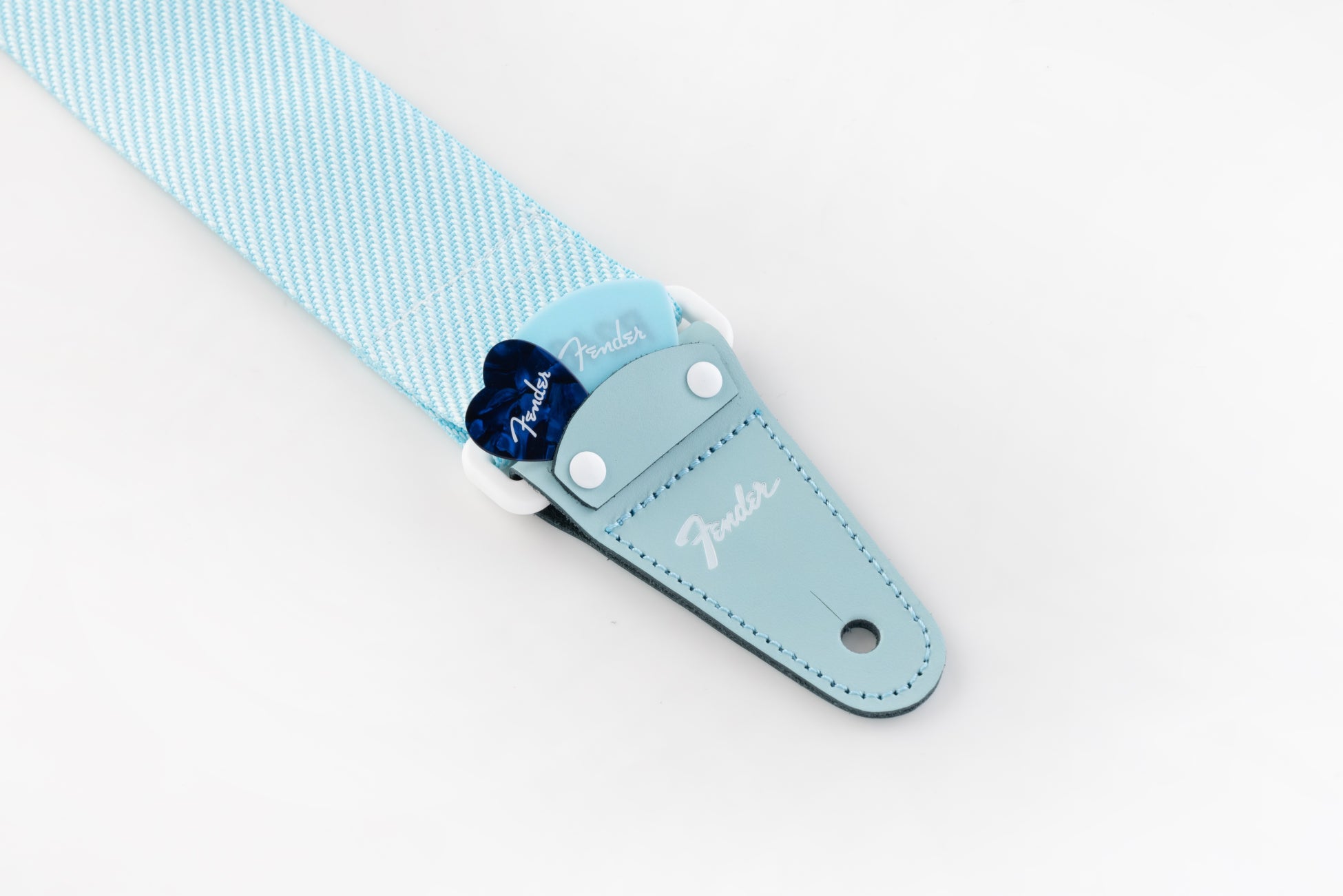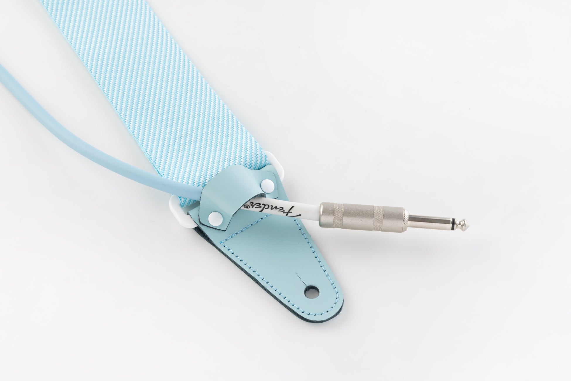 ReiとFenderが共同開発した『Fender® Rei Signature Strap』は、デザインの細部にまでこだわり抜いたシグネイチャーギターと調和する特別なストラップです。ベルト部分は、Fenderの様々な製品に使用される伝統的でアイコニックなツイード素材にインスパイアされています。堅牢に織り上げられたツイード素材のカラーには、Reiのファーストアルバムのジャケットからインスパイアされた『Rei Stratocaster® R246』のボディカラー“Rei Blu”とマッチするブルーを採用しました。ストラップエンドに使用した国産の高品質なレザーは、ベルト部分に合わせて染色され、同系色のステッチで日本の熟練した職人によって縫製されています。レザーエンドのフロントにはピックを、バックにはケーブルを差し込むためのループがそれぞれ備えられており、実用性も兼ね備えたデザインです。