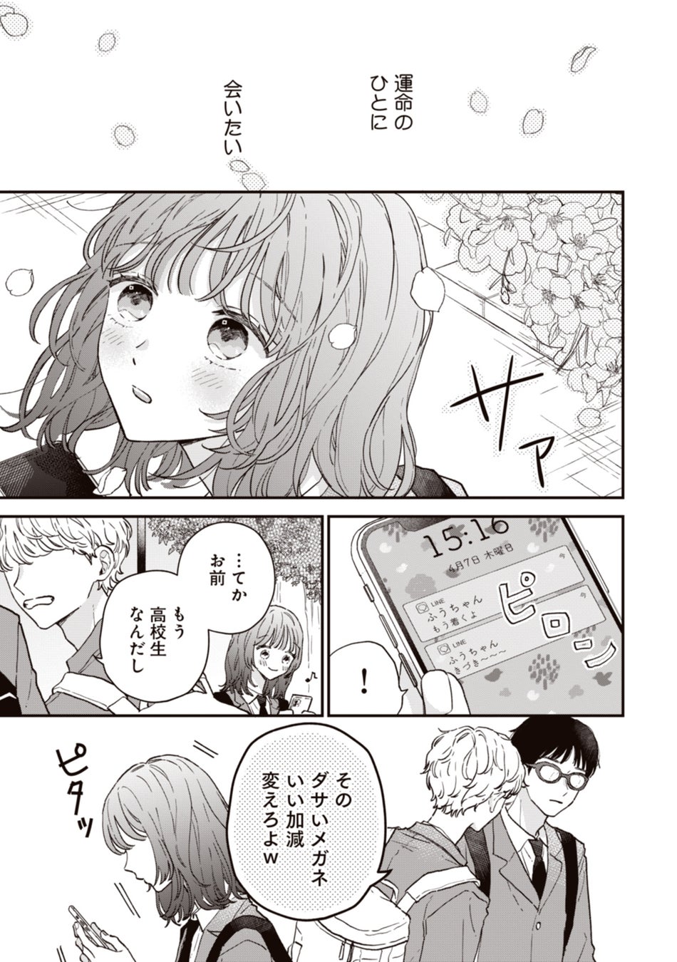 容姿を理由にフラれたきづきは、自分を磨き、高校では「運命の人」を探すことを決意。