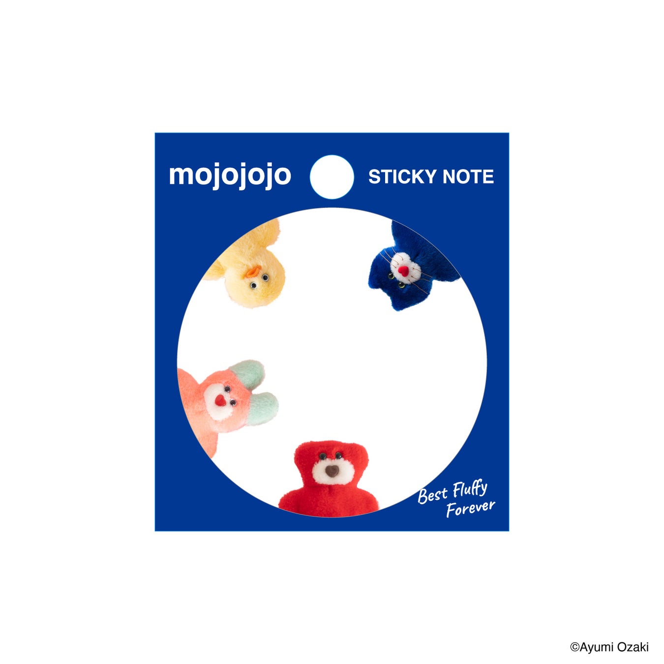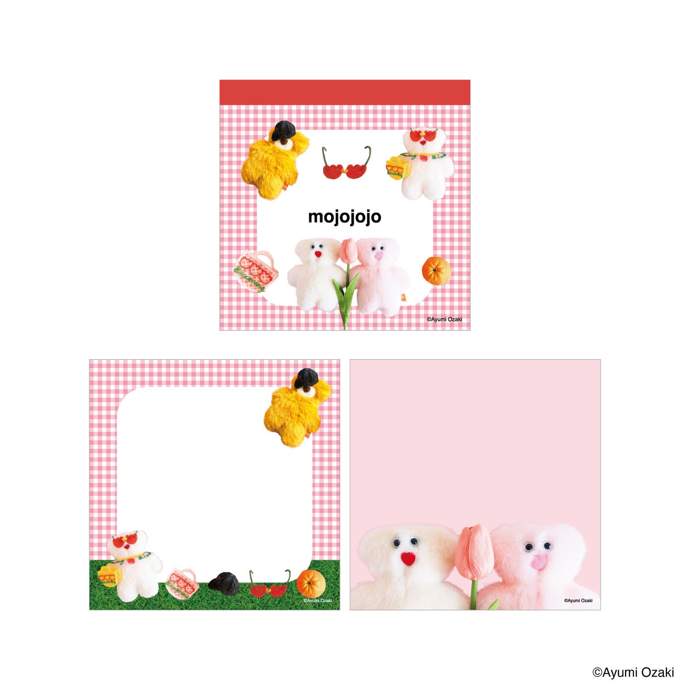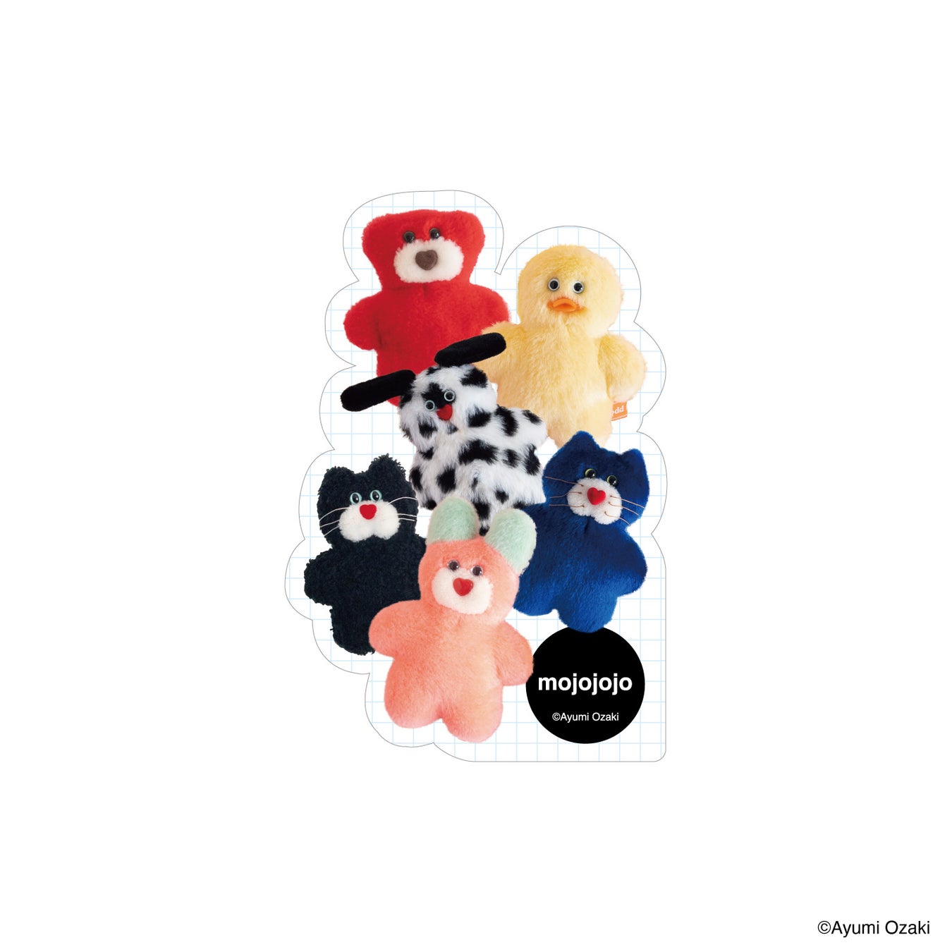 今回新発売するステーショナリーは、スクエアメモ、付箋、B6リングノート、ブックマーカー、ダイカットステッカー、アクリルクリップ、アクリルキーホルダー、ランチトートの8アイテム(全28種)です。「mojojojo」作品の中でも人気が高い定番のぬいぐるみをデザインし、「mojojojoらしさ」のある明るいカラーに仕上げました。
