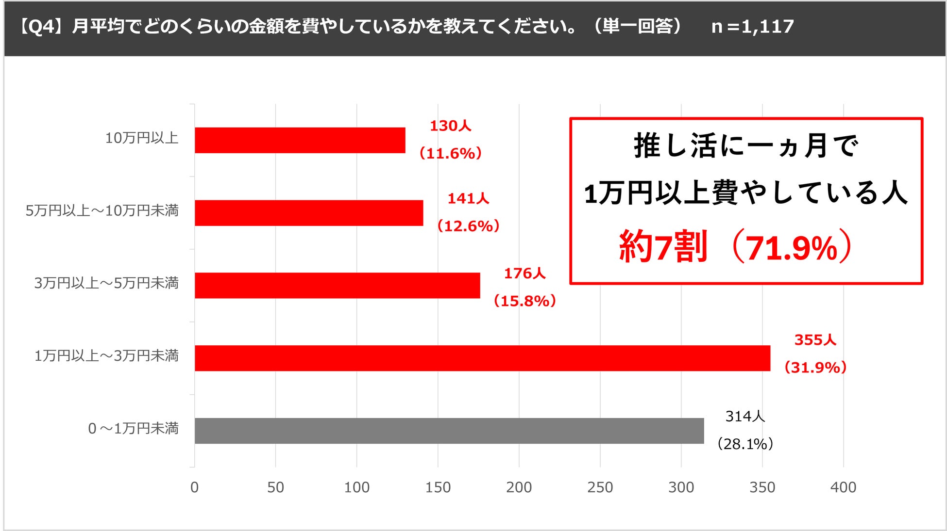 3. 約 7 割(71.9%)が月 1 万円以上推し活に費やしていることが判明!