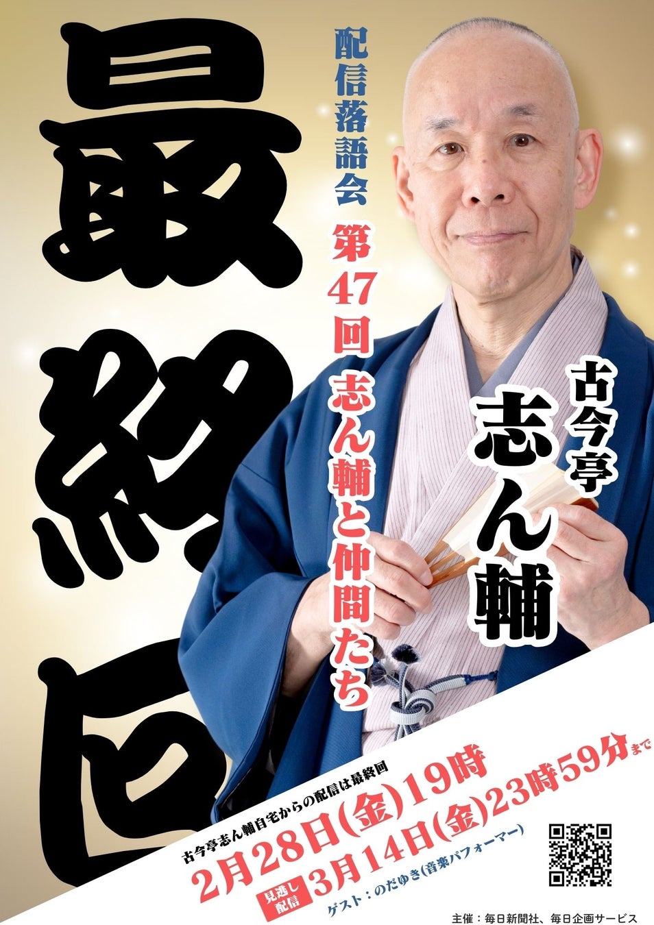 ありがとう、さようなら! ついに最終回! 毎日新聞社が古今亭志ん輔自宅からお届けする配信落語会「志ん輔と仲間たち」