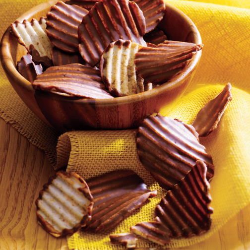 ポテトチップとチョコレート、意外な組み合わせから生まれた大ヒットのおいしさ。 パリッとした軽快な食感のポテトチップの片面に、口どけの良いチョコレートをコーティングしました。 チョコレートの甘さとポテトチップの塩味の絶妙なバランスがクセになるおいしさです。