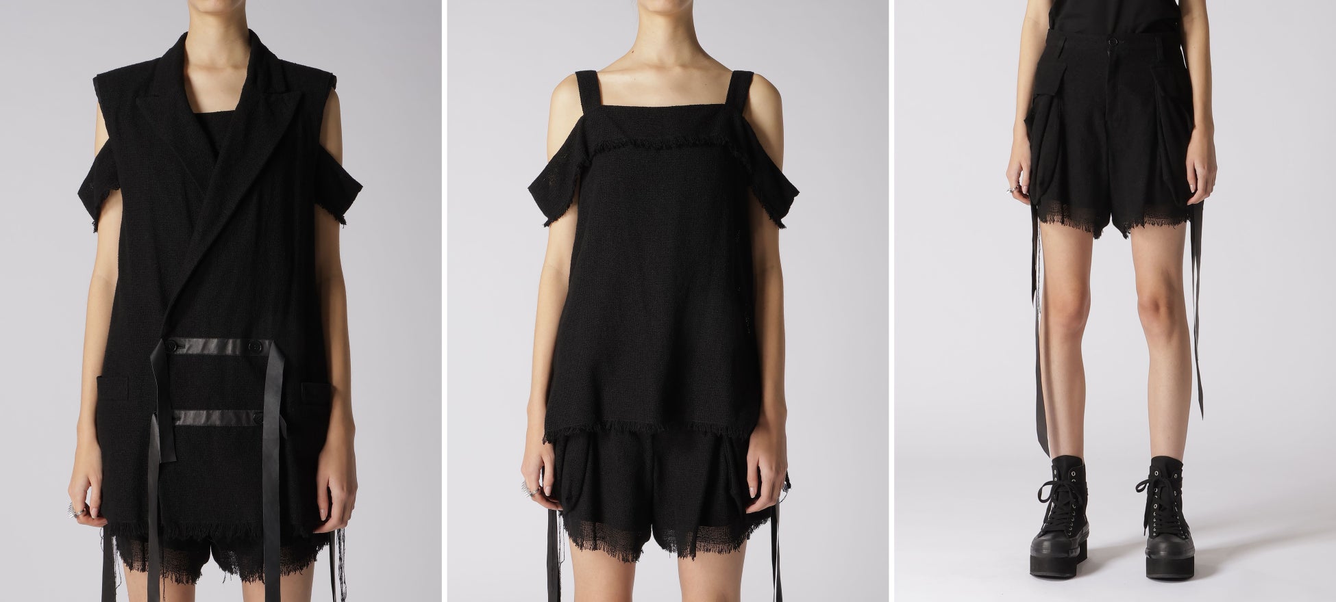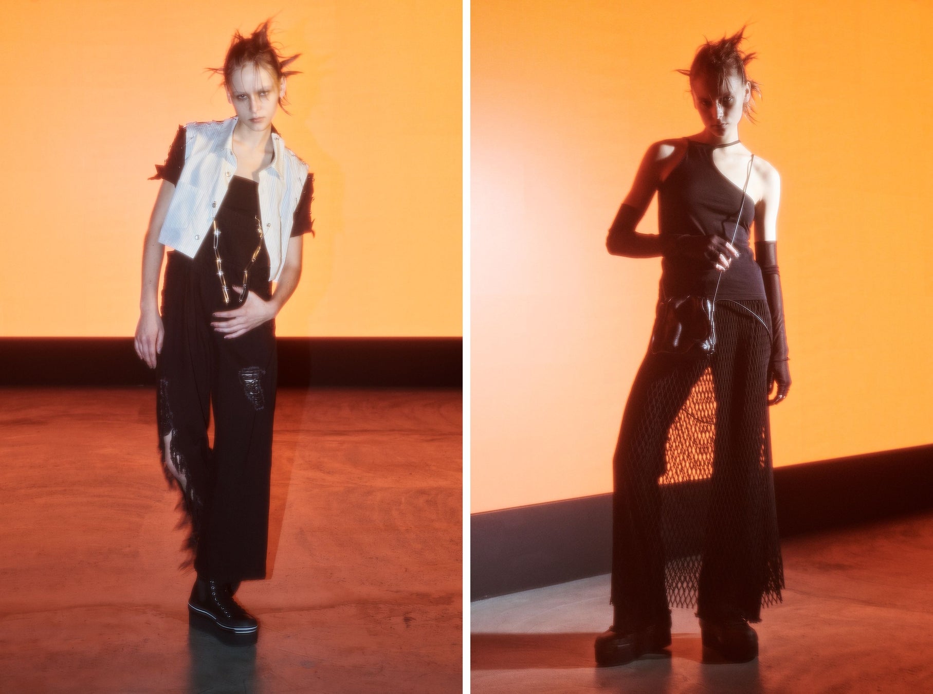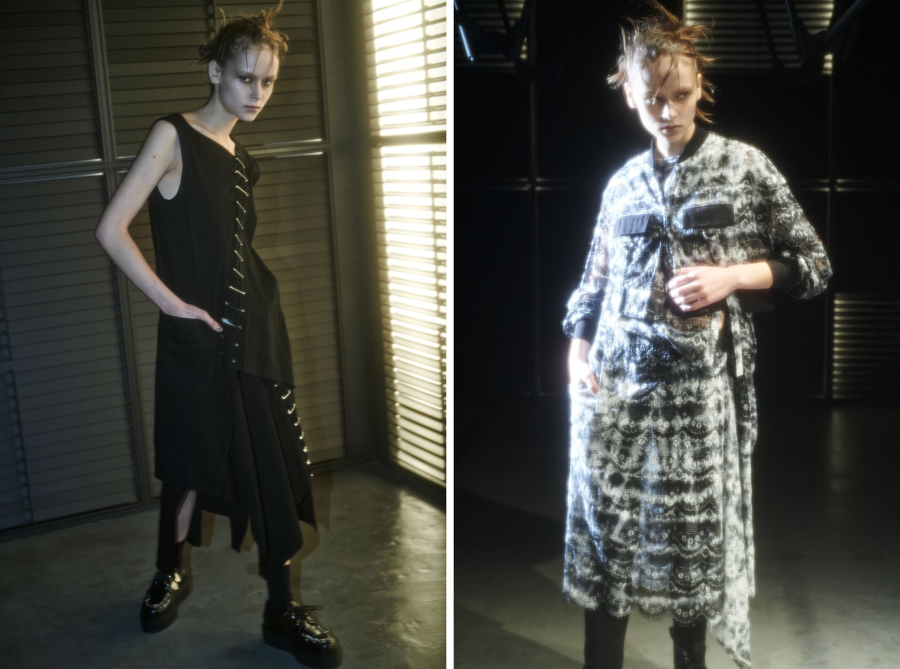 自在なセーフティピン遣いやメッシュネットを配したパンキッシュシリーズ、職人による絞り染めレースの幻想的な