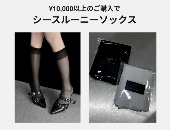 税込1万円以上のご購入で「シースルーニーソックス」、税込2万円以上のご購入で「レザーバックルベルト」をプレゼント!