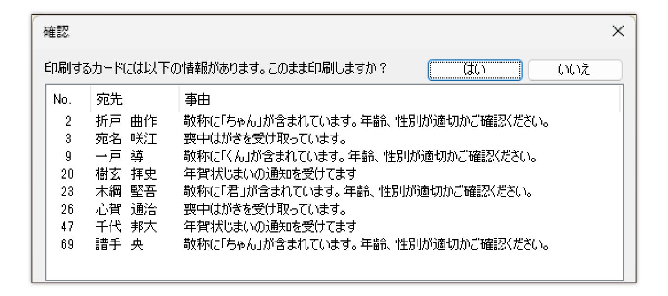 印刷をする前に、入力漏れや失礼なところがないかをチェックしアラートを表示してくれます。
