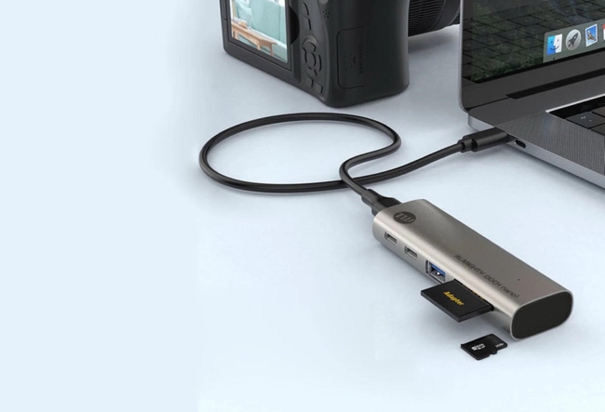 ALMIGHTY DOCK nano1は、コンパクト設計を重視。Apple Magic Mouse 2と比較して、およそ半分以下のサイズです。 5-in-1 USB ドックは数多くありますが、本製品は収納時のケーブル状態にも着目し、脱着式にすることにより、より持ち運びも便利な設計となっています。