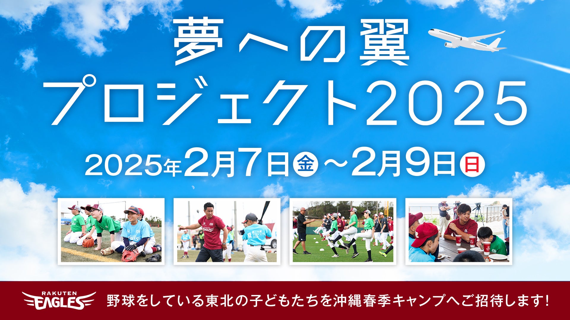 株式会社楽天野球団(本社:宮城県仙台市宮城野区、代表取締役社長:森井 誠之)は、東北の野球チームに所属する小学生を「スプリングキャンプ2025」に招待する『夢への翼プロジェクト2025~沖縄春季キャンプ2泊3日の旅~』を2024シーズンに引き続き実施することとなりましたので、お知らせいたします。