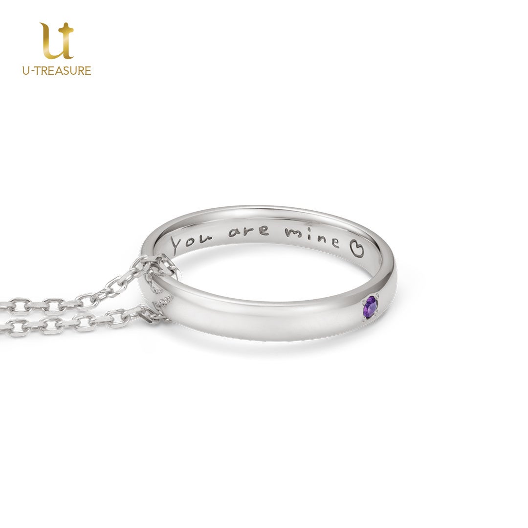 恋乃夜まいさんのイメージカラーをアメシストで表現し、普段のファッションにも取り入れやすいよう、シンプルにデザインしたリングネックレスです。