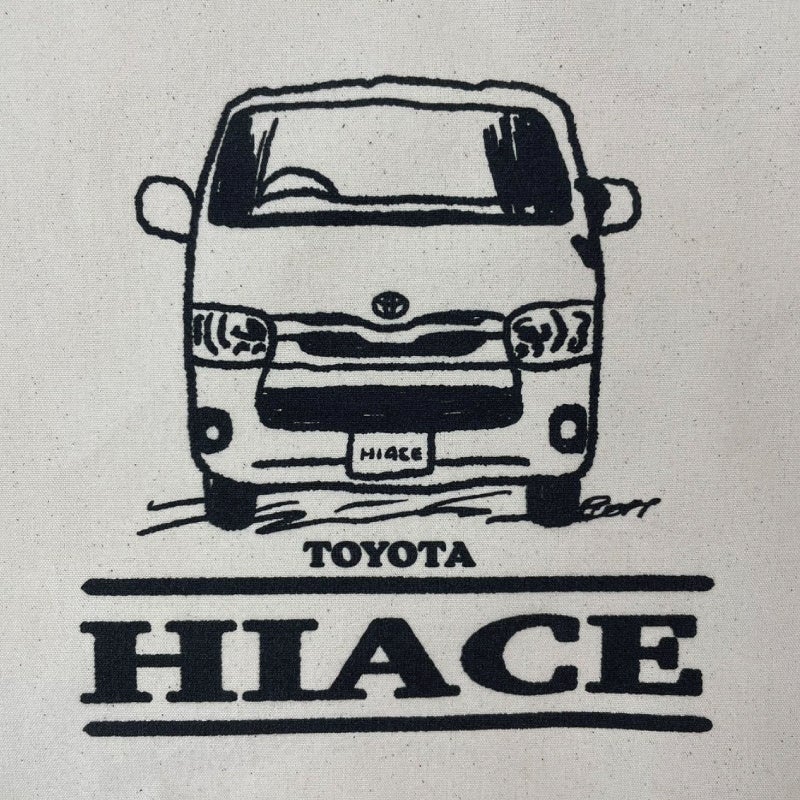 手書き風のイラストが入ったシンプルで遊び心のあるバッグはハイエースファンにぴったりのアイテム。