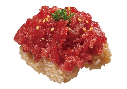 “特別限定赤シャリ”と合わせてご賞味いただきたいおすすめの商品は、極寒のアイルランド沖の海で獲れた天然本まぐろです。アイルランド沖で獲れた天然本まぐろは、北大西洋の冷たく荒れた海流で育ち、身が締まった上に脂のりが抜群で、まぐろの中でも最高峰とも謳われています。脂の甘みと旨味が濃いといわれる本まぐろは“赤シャリ”との相性も抜群です。今回は、定番でもご提供している大とろ・中とろ・赤身に加えて、希少部位の中落ち、ねぎとろ軍艦などの寿司が登場いたします。“特別限定赤シャリ”とこだわりのまぐろをご賞味ください。
