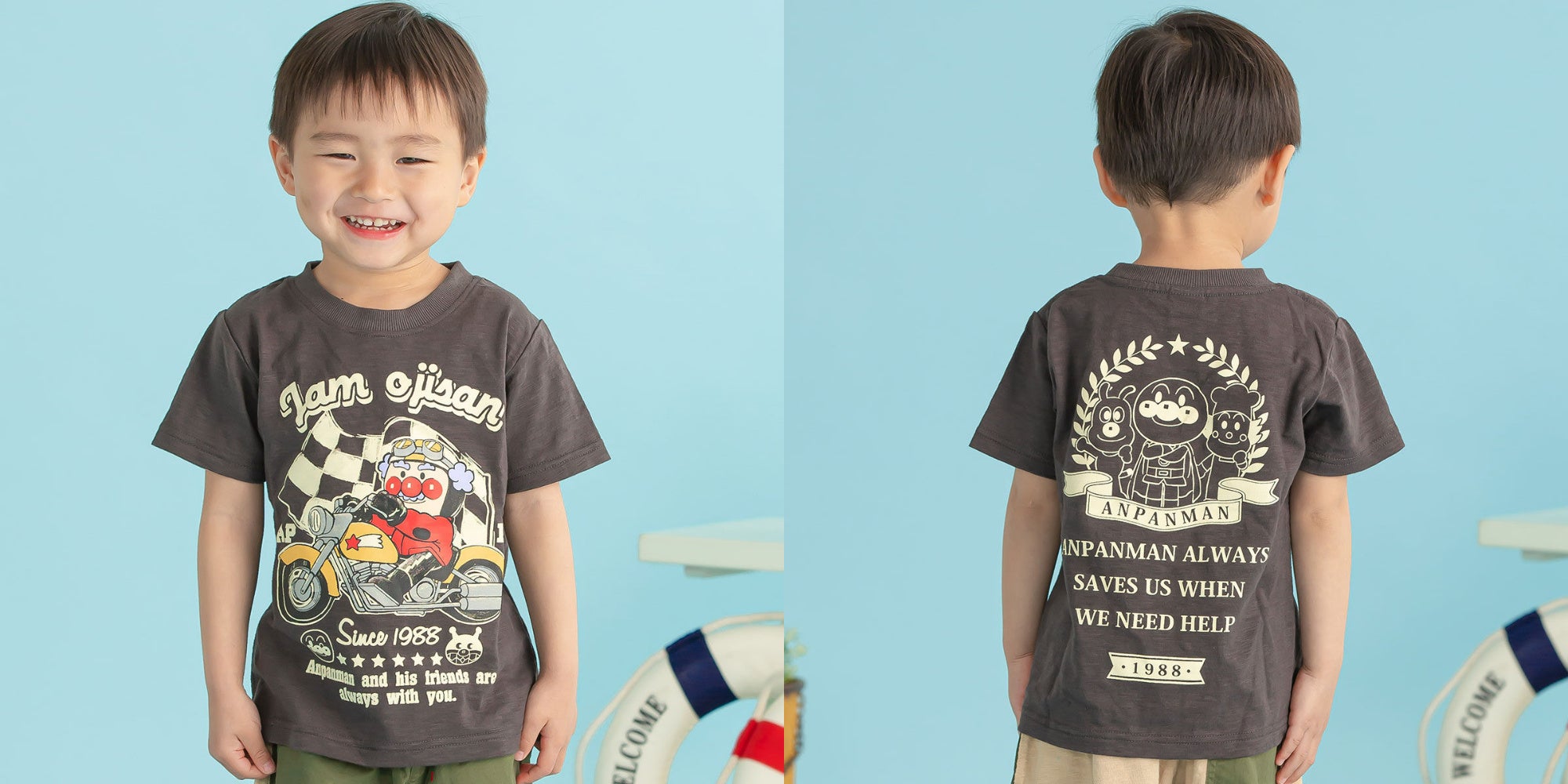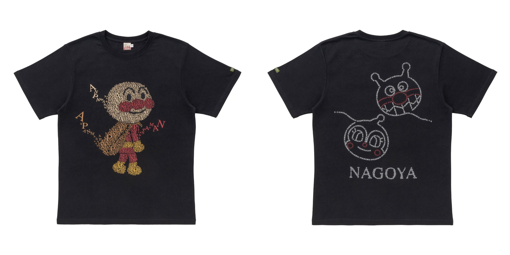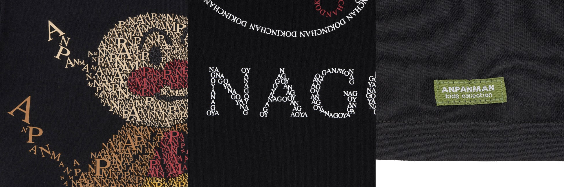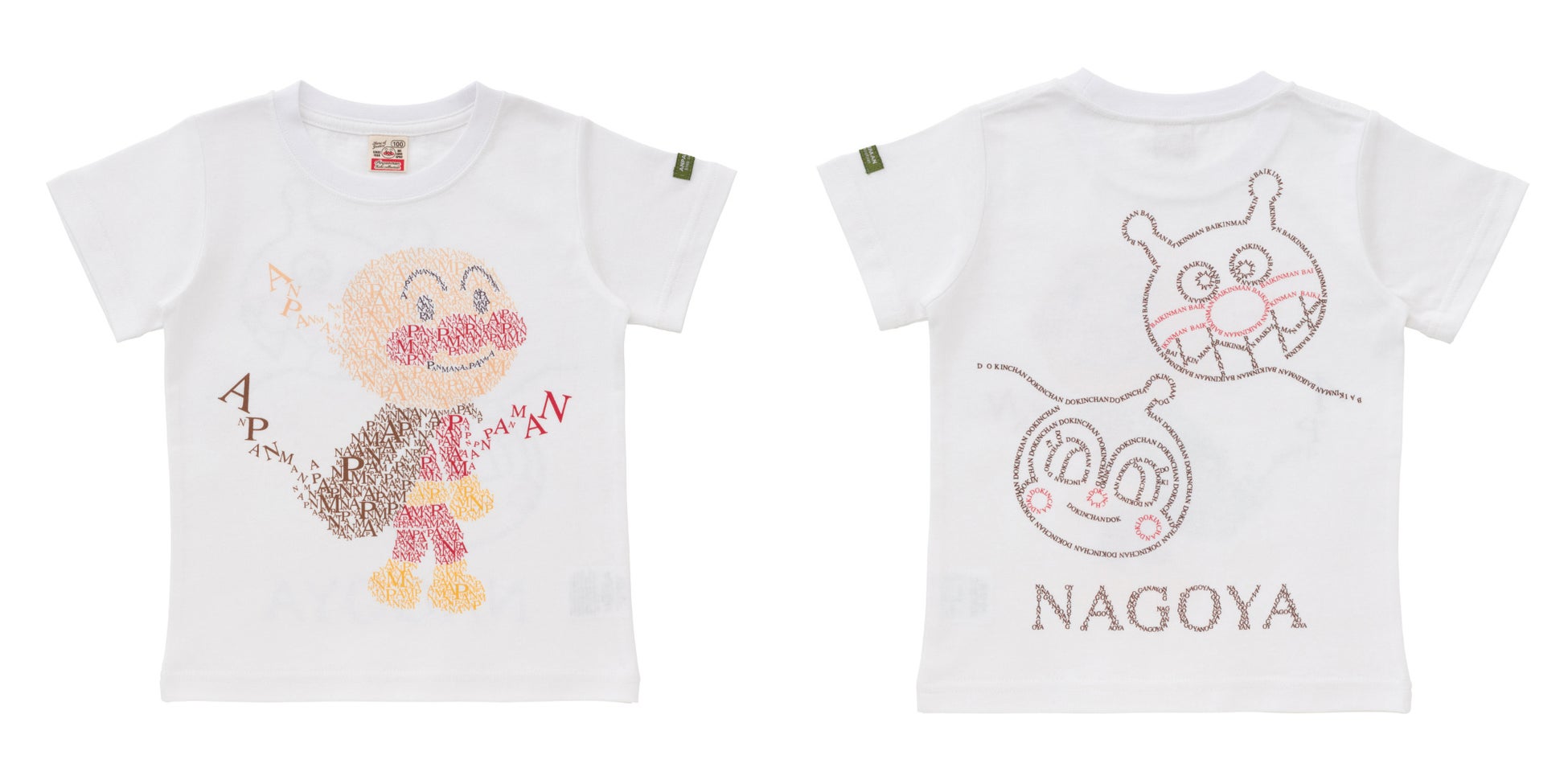 Tシャツはバックのテキストが店舗ごとに異なるデザインで、名古屋アンパンマンこどもミュージアム限定Tシャツでは、「NAGOYA」のロゴが文字で構成されています。