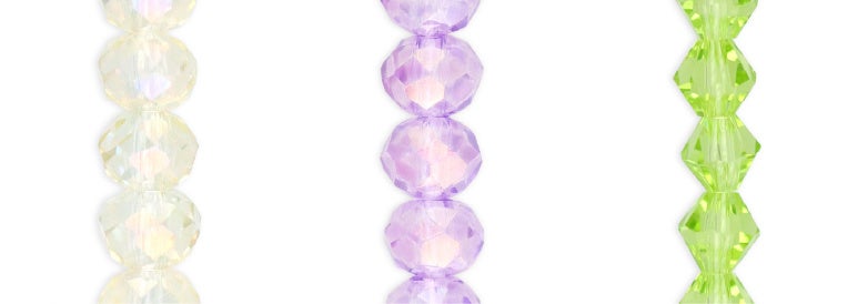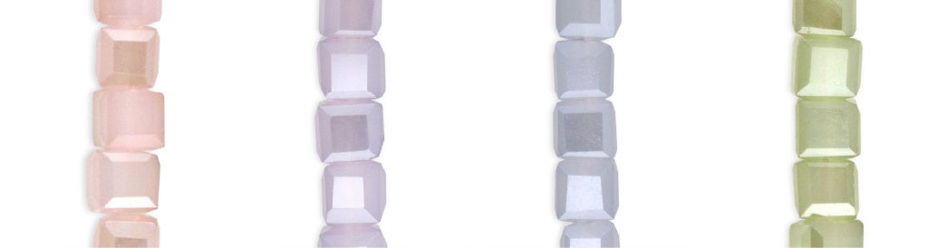 春の訪れを感じるような、柔らかい色合いのガラスビーズが新登場です。キューブカットが特徴的で、小ぶりなパーツと合わせて可憐なアクセサリーを作れます。また、オンラインショップで廃盤商品となっていたボタンカットのガラスビーズ・春カラーが復活しました。ソロバンカット、ボタンカットと使いやすい形です。