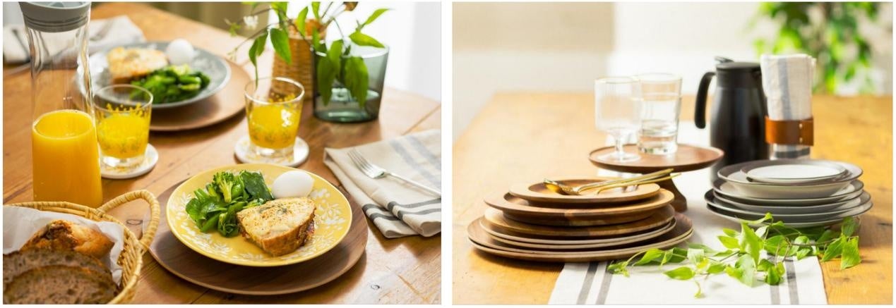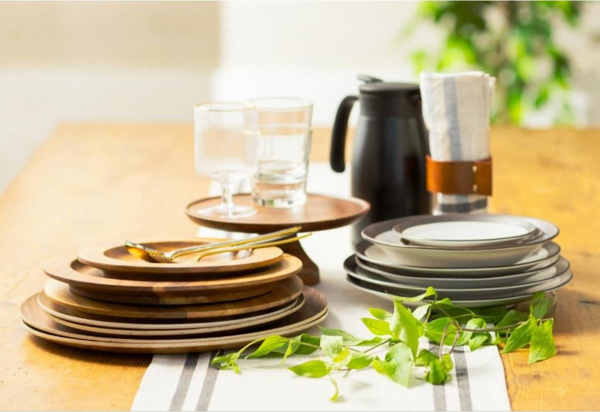 ミモザ柄やお洒落なアカシア製のプレートで食卓を華やかに。