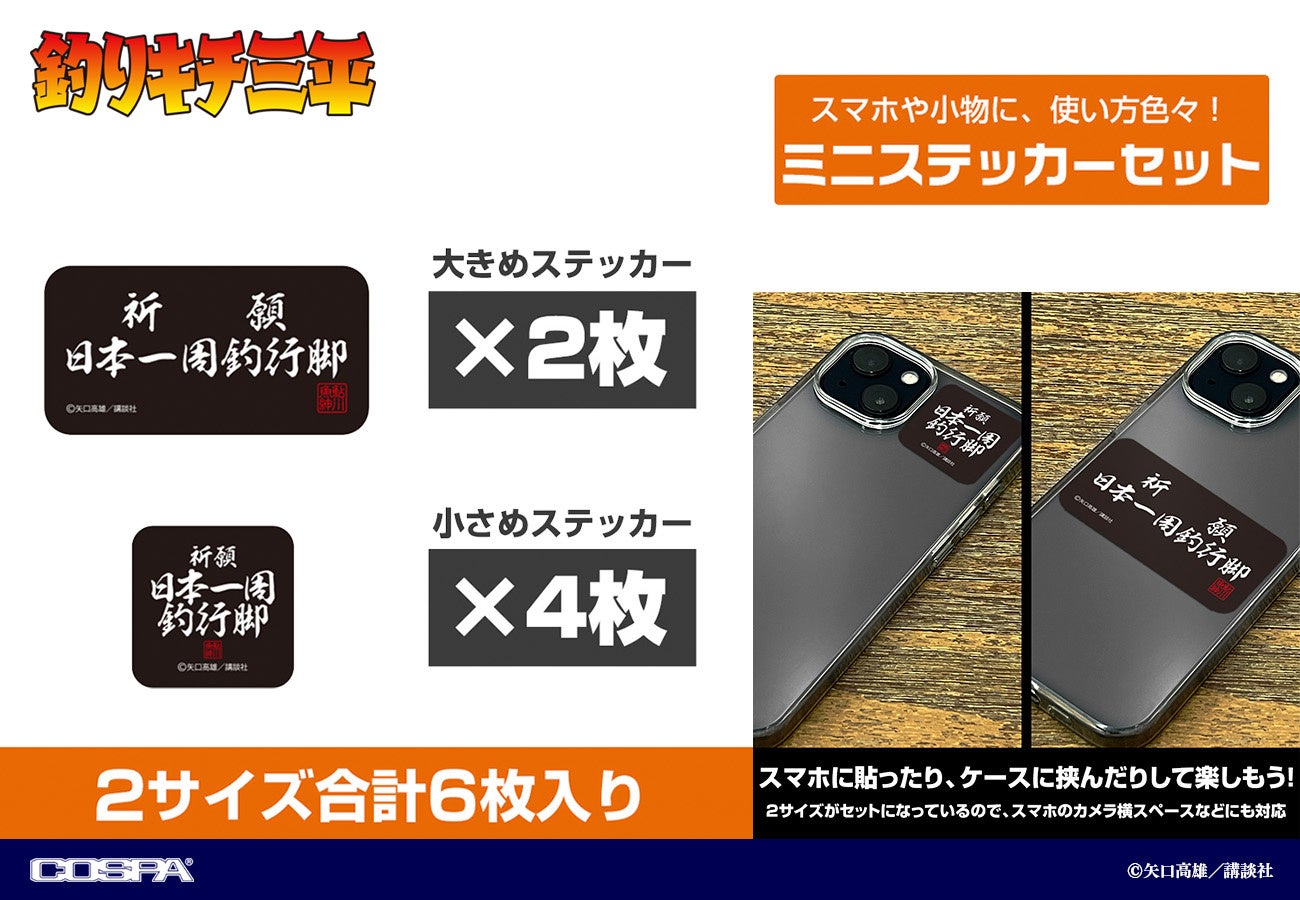 商品名:祈願 日本一周釣行脚 ミニステッカーセット サイズ:(約)6×6cm以内 ×2枚 /(約)3×3cm以内 ×4枚 (6枚セット) 発売日:2023年12月中旬 |