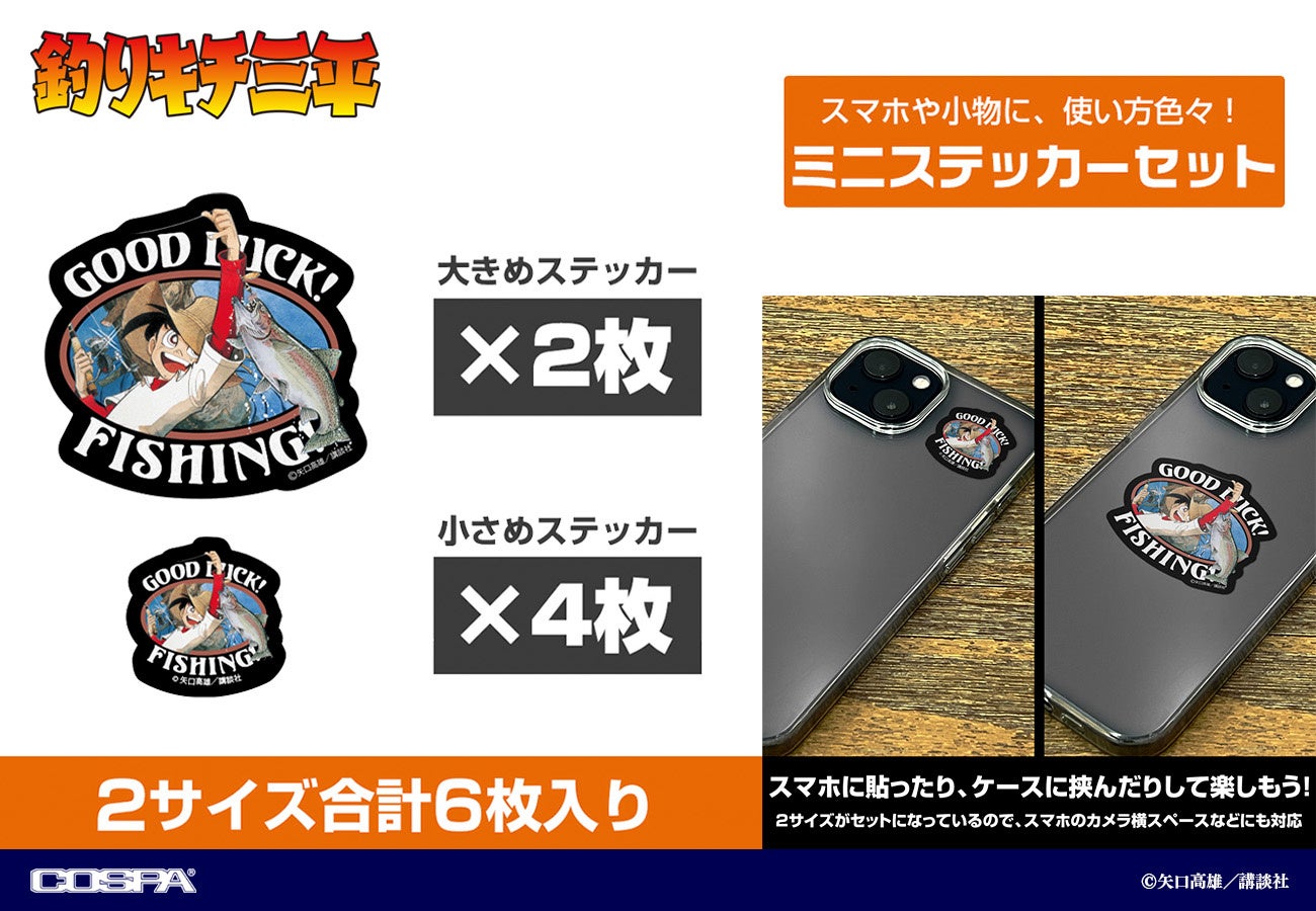 商品名:釣りキチ三平「GOOD LUCK!」 ミニステッカーセット サイズ:(約)6×6cm以内 ×2枚 /(約)3×3cm以内 ×4枚 (6枚セット) 発売日:2023年12月中旬 |