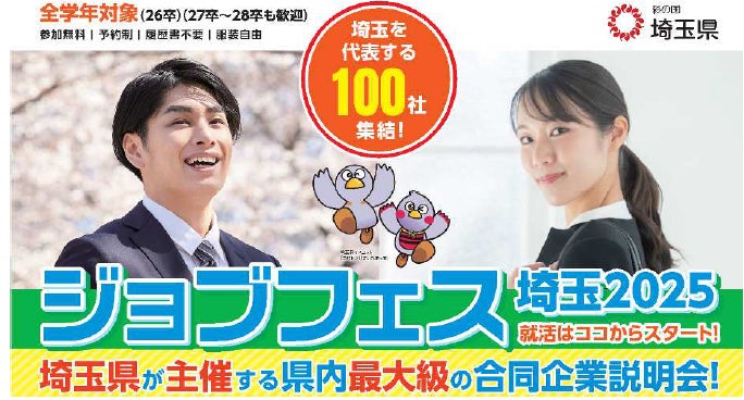 【埼玉県】県内最大級の就活イベント「ジョブフェス埼玉2025」を開催します~県内企業100社が出展!~
