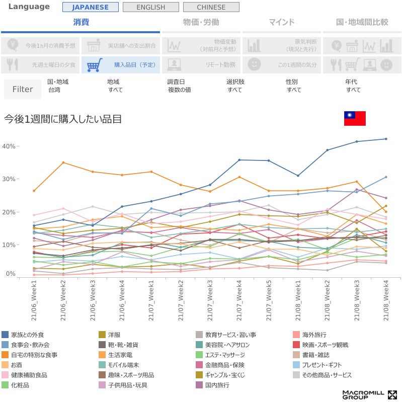 「台湾」の生活者意識をウィークリーで調査開始 ~『Macromill Weekly Index Asia』、アジア6つの国・地域で最新の定点観測データが取得可能に~