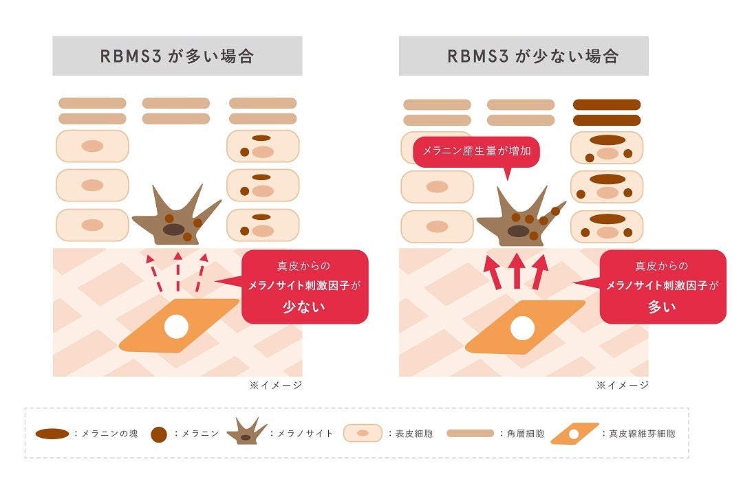 ※9 2023年10月13日現在、科学文献データベース PubMedにより国内化粧品業界においてRBMS3遺伝子がメラニン産生に関与している文献がないことを確認(ポーラ化成研究所調べ)