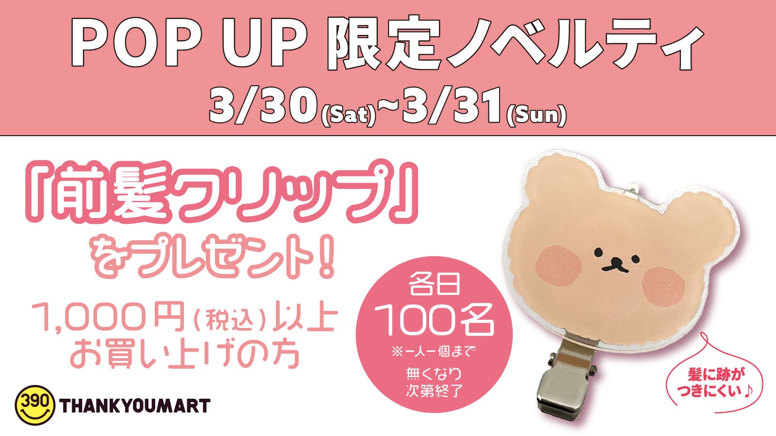 ポップアップストア限定で、税込1,000円以上お買い上げの先着200名(各日先着100名)様に「前髪クリップ」をプレゼントするノベルティキャンペーンも実施いたします。