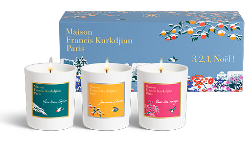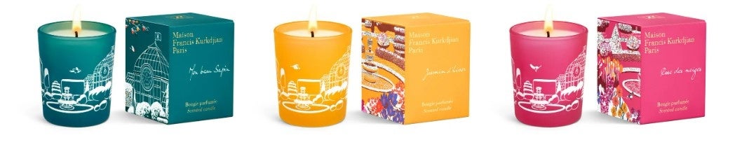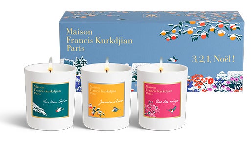 メゾン フランシス クルジャン製品*¹を税込30,800円以上お買い上げの方に、ホリデーらしい遊び心あふれるセンティッド ミニキャンドル(30g)3種の内いずれかを1つプレゼント*²いたします。