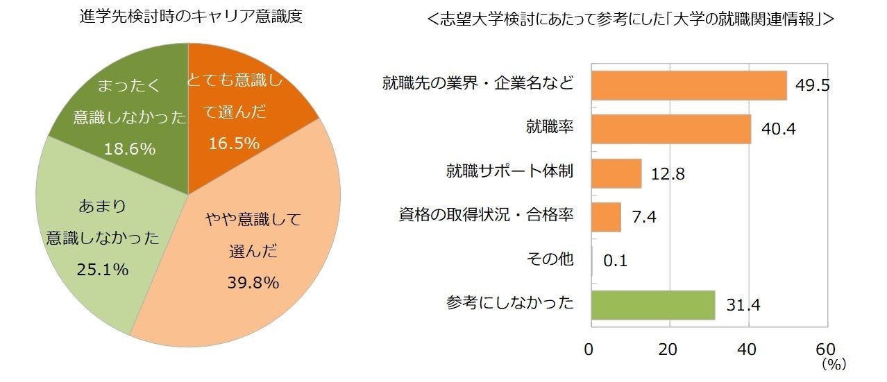 大学受験に際し、さまざまな情報を比較して志望校を選ぶ人は多くいます。情報収集の仕方によって大学生活の満足度に違いはあるのだろうか。2022年春に大学または大学院を卒業する学生に、大学選びの際に着目した点や、大学進学時のキャリア意識などを尋ね、入学後の学業への取り組み姿勢や、就職先企業への満足度との関連性を調べました。その結果、満足度の高い大学生活や就職先選びに結びつく要因が見えてきました。
