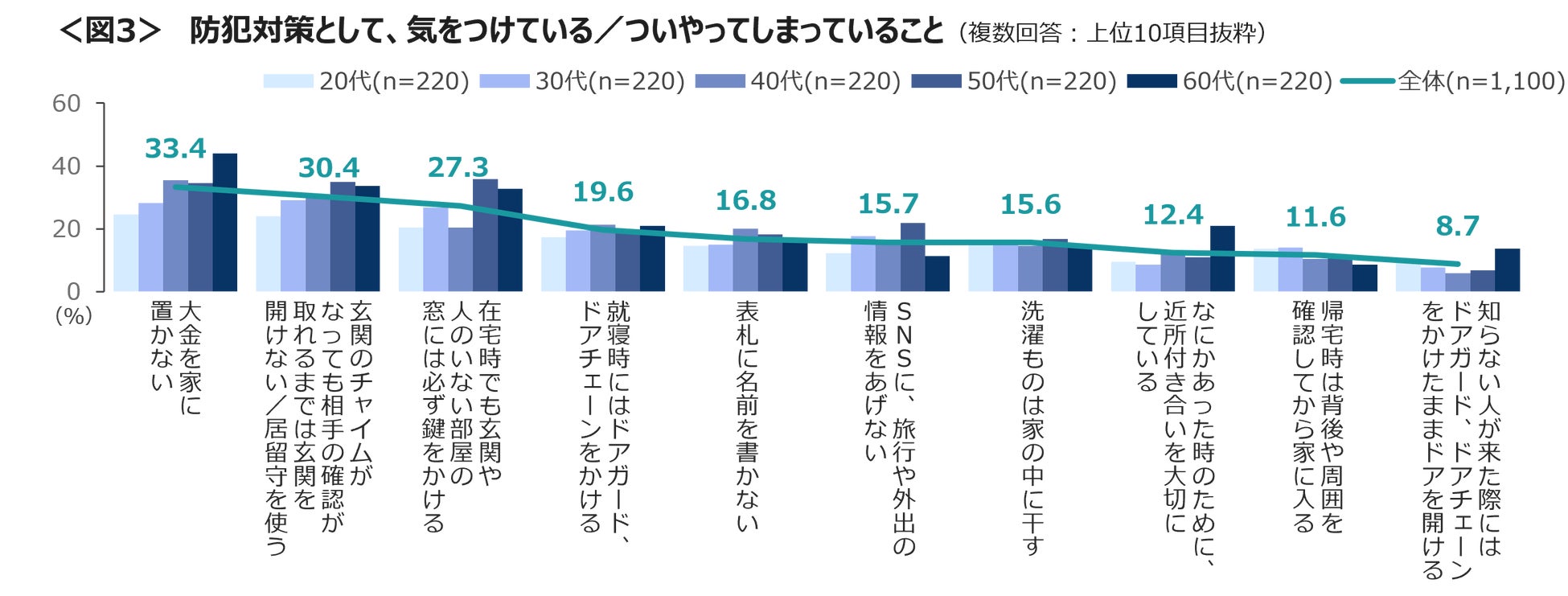 空き巣や強盗などの犯罪被害は「他人ごとではない」が6割 「大金を家に置かない」「玄関を開けない」など普段から意識
