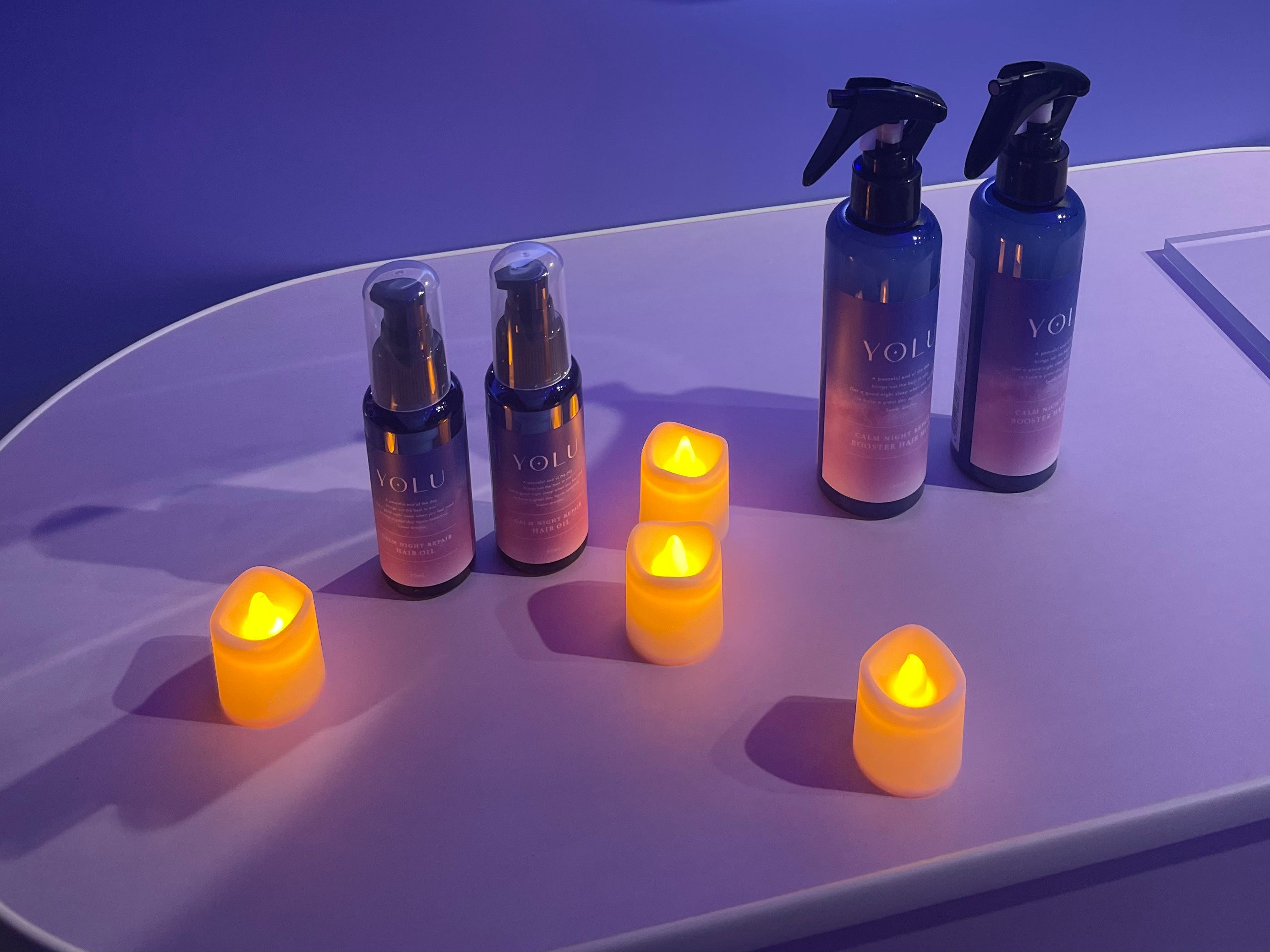 本イベントでは、キャンドルで空間のライトアップや、ご来場者の中でSNS投稿いただいた方に先着でYOLUのカームナイトリペア、リラックスナイトリペアの香りのアロマキャンドルをプレゼントしました。