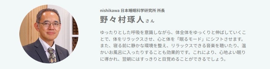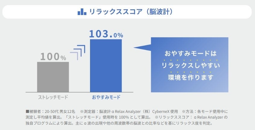 また、《理想の寝姿勢》を目指すべく、本製品に搭載したストレッチ機能においても、睡眠前の姿勢をサポートするストレッチモード(おやすみモード)と、起床時の身体の活性化を促すストレッチモード(おはようモード)は「nishikawa 日本睡眠科学研究所」が監修。