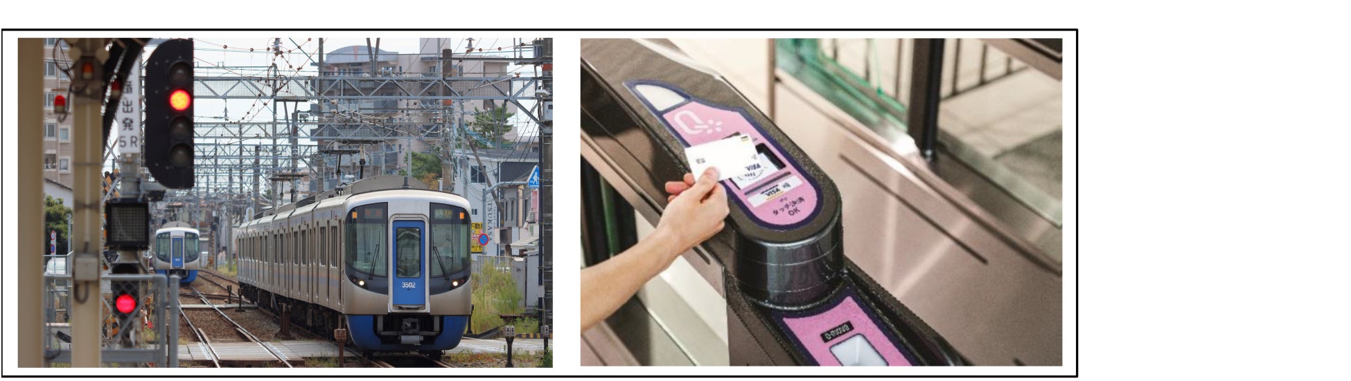 対象駅の専用改札機または簡易読み取り機に、タッチ決済対応のカード(クレジット・デビット・プリペイド)や同カードを設定したスマートフォン等を⼊場時と出場時にかざすことで、ご利用いただけます。