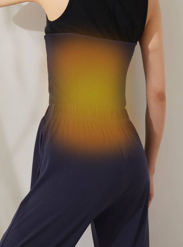 冷えやすい手首・足首の二重幅を広めに確保。血行促進を促すと共に、縦落ちしたすっきりなシルエットを実現。着ることが楽しみになるデザインです。