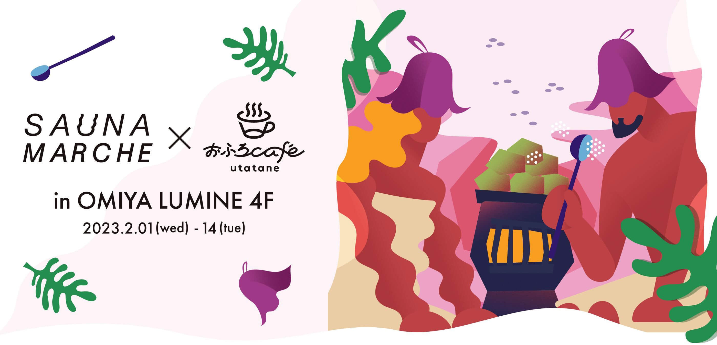 株式会社温泉道場(埼玉県比企郡ときがわ町、代表取締役 山崎寿樹)が運営する温浴施設 おふろcafe utatane(埼玉県さいたま市)は、2023年2月1日(木)〜14日(火)の期間中、ルミネ大宮にて、サウナを愛するブランド・クリエイターの展示販売イベント「サウナマルシェ」を、株式会社CESAR(代表取締役 加藤崇仁)、サウナフルネス(主宰 橋本健太郎)と共同で開催します。