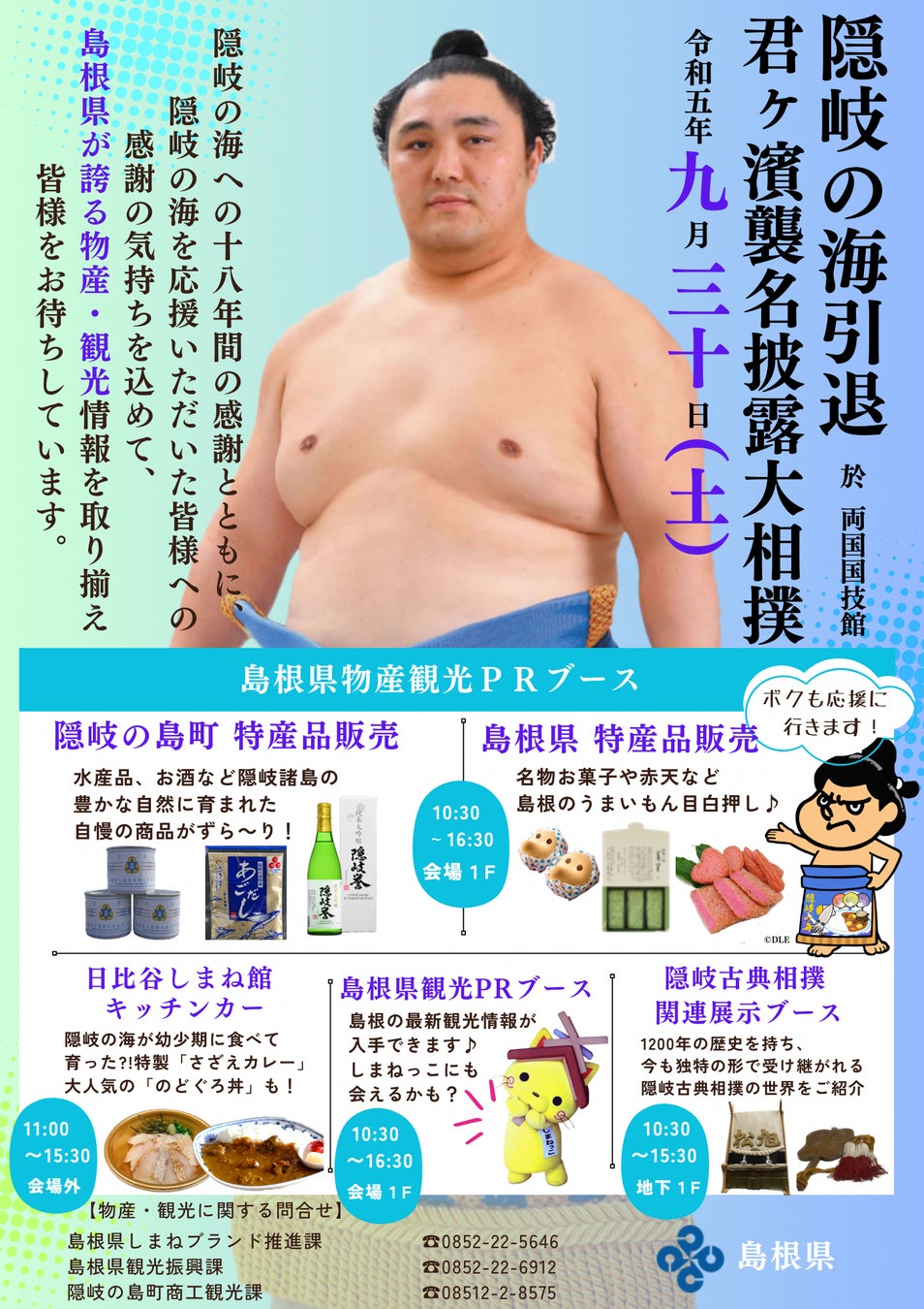 9/30(土)隠岐の海引退 君ヶ濱襲名披露大相撲(断髪式)会場に、島根県物産観光ブースを出店!