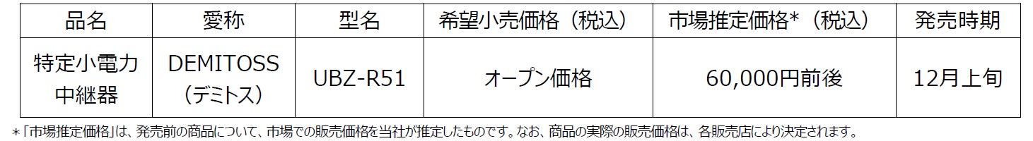 当社は本機を、免許も資格も申請も不要で、基本料や通話料もかからず、“だれでも・どこでも・簡単に・快適な”コミュニケーションを提供する“DEMITOSS”シリーズの特定小電力中継器として市場展開します。