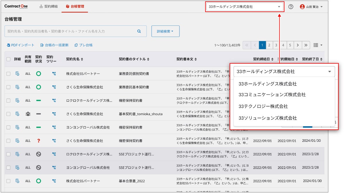 契約データベース「Contract One」がオプション機能「グループ企業管理」を実装