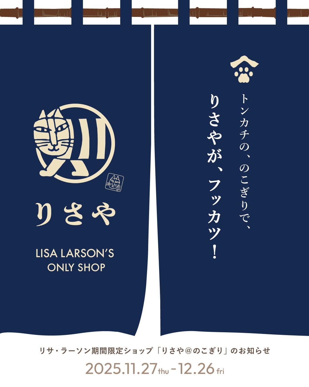 株式会社トンカチ(東京都目黒区、代表取締役:勝木悠香理)は、この度、スウェーデンの陶芸家リサ・ラーソンの期間限定ショップ「りさや@のこぎり」の開催を発表しました。トンカチの直営店「トンカチ2号館」のクローズから半年ぶりとなる待望のリアルショップで、2025年11月27日(木)〜12月26日(金)まで、東京都渋谷区・猿楽町のギャラリー「のこぎり」にて開催いたします。