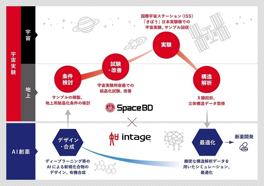 インテージヘルスケアとSpace BDは、各社がサービス提供する新薬創出のためのAI創薬プラットフォーム「Deep Quartet(ディープカルテット)」と、宇宙特有の微小重力環境を活用した「高品質タンパク質結晶構造解析サービス」を連携させた創薬研究支援サービスの提供を視野に共同研究を行っています。