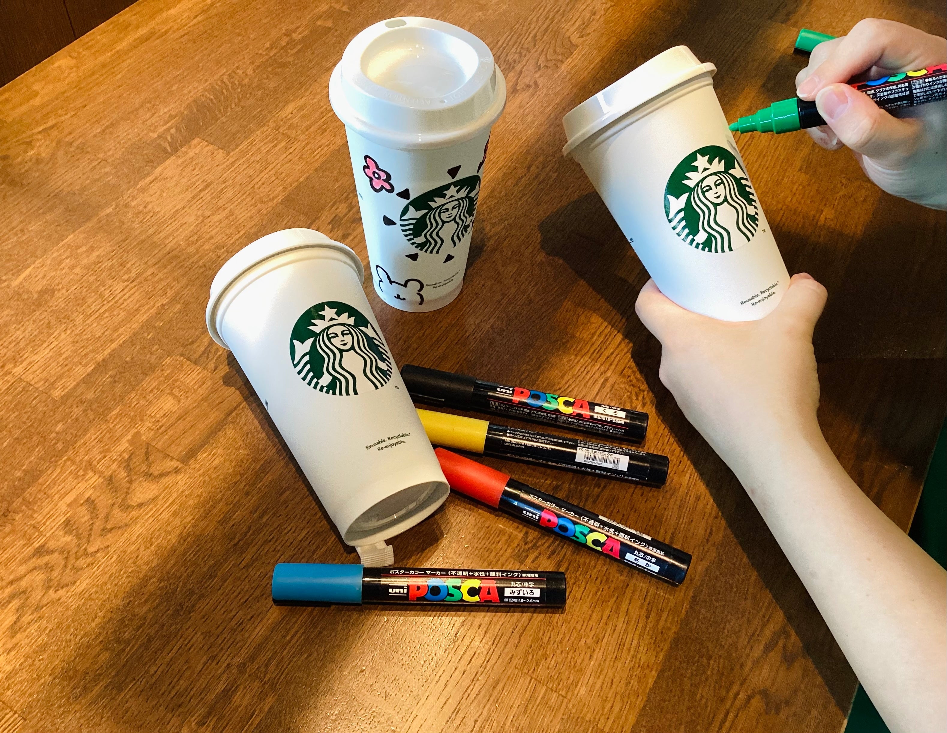 スターバックスのエプロンを身につけて、タンブラーにお絵かきしよう!自分で描いたデザインタンブラーを使って身近なエコに取り組もう!!