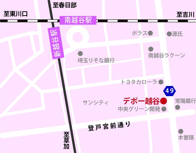 所在地:埼玉県越谷市南越谷1-2904-3 JR 南越谷駅南口より徒歩6分 東部スカイツリーライン 新越谷駅東口より徒歩6分