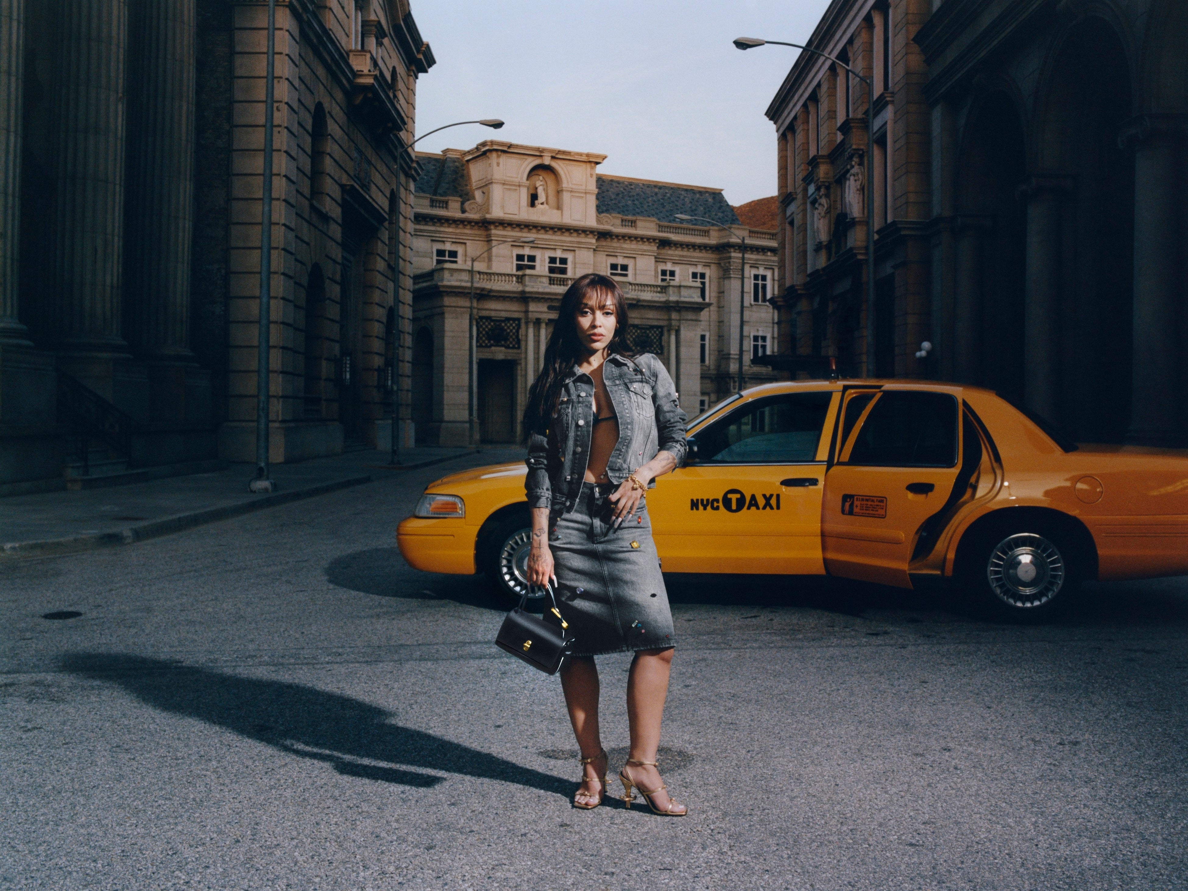今回のキャンペーンで主役となるのは、ブランドの新たな定番となる「ザ デュアル バッグ」。マーク ジェイコブスのランウェイで初登場し、控えめなラグジュアリーと日常的な実用性、彫刻のようなフォルムと鮮やかな色使いのディテールといった“二面性”を体現しています。他にも、「ザ スナップショット ポシェット」「ザ キルテッド デニム チェーン サック バッグ」「ザ グラム クロー クリップ ショルダー」などが今シーズンより新たに登場。今季のレディ・トゥ・ウェアやシューズとスタイリングすることで、夏の昼と夜をシームレスに行き来できるアイテムとして提案されています。