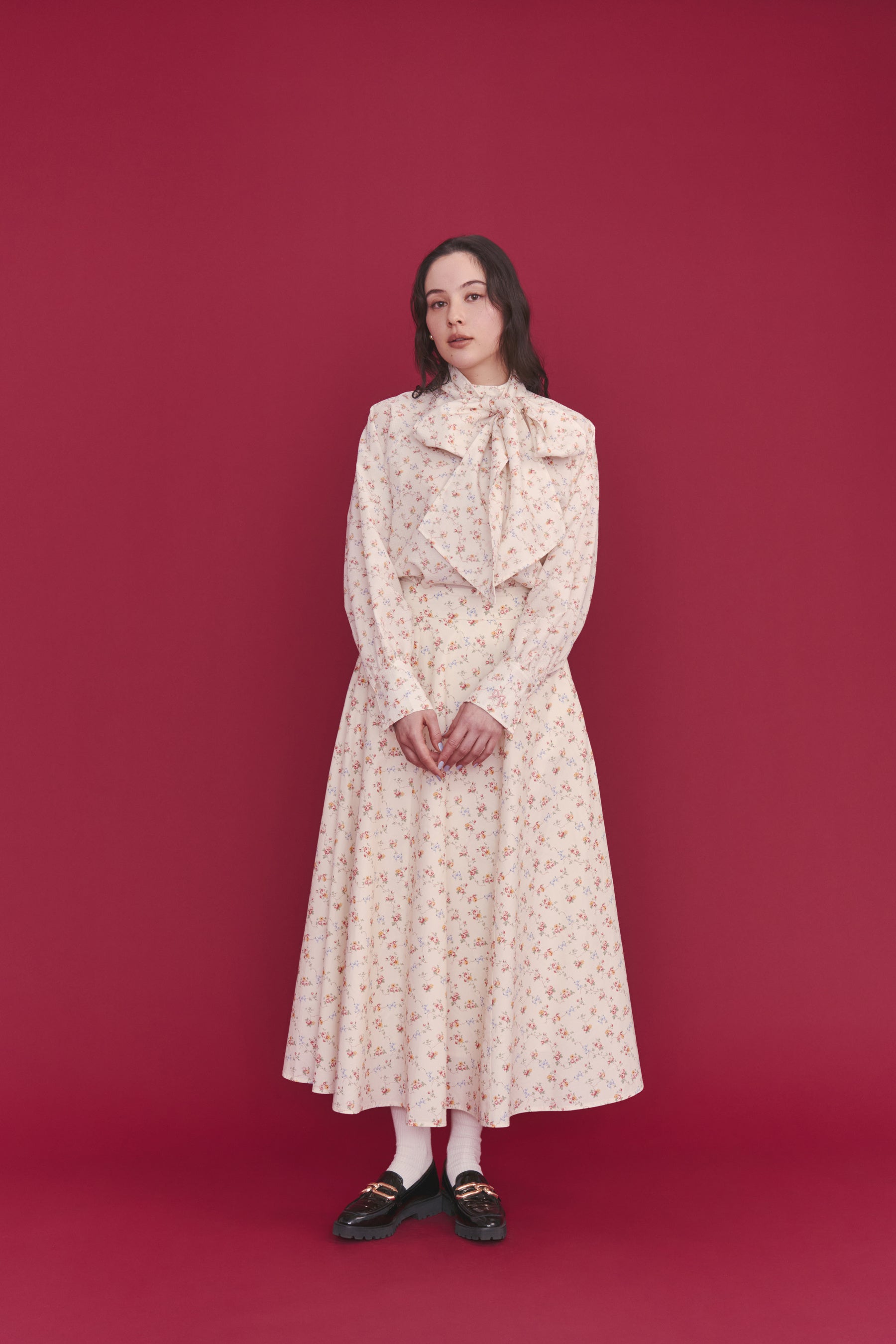 日々のカジュアルな着回しはもちろん、ボウタイブラウスとフレアスカートのコーディネートや、総