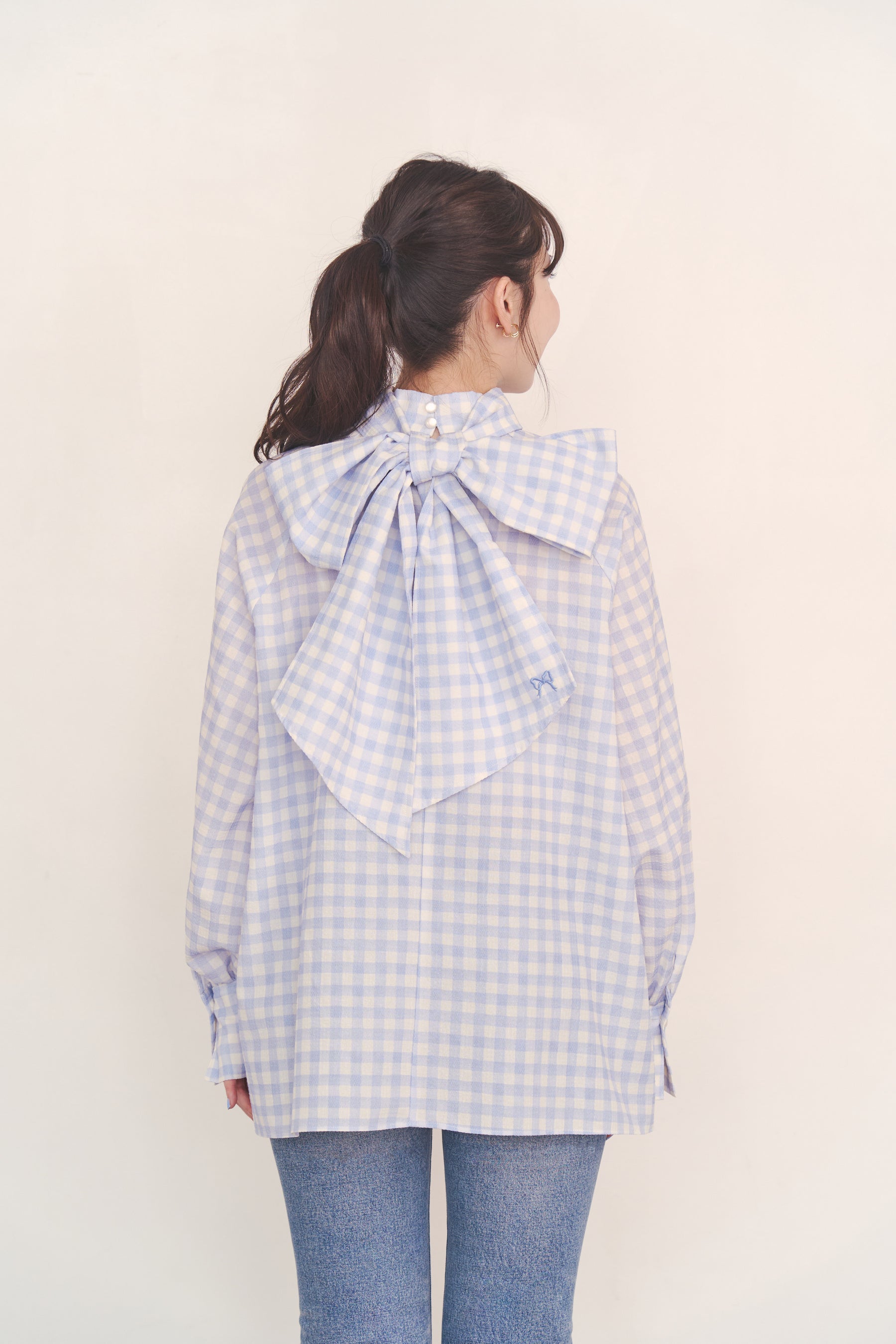 ●クラシカルな気品と、自由なアレンジが楽しめるボウタイブラウスが新登場。シーンに合わせた結び方のアレンジや取り外しができるボウタイは、リボン結びでフェミニンに、ネクタイ風に結んでマニッシュに、あるいは外してシンプルなスタンドカラーのシャツとして。ボウタイの先と袖口にリボン刺繍をあしらい、細部までキャス キッドソンらしい愛らしさを詰め込みました。チェックの織り柄入りの生地は表情豊かな奥行きが魅力。フレアスカートと柄を合わせて、セットアップ風の着こなしを楽しむのも今季らしいスタイルです。