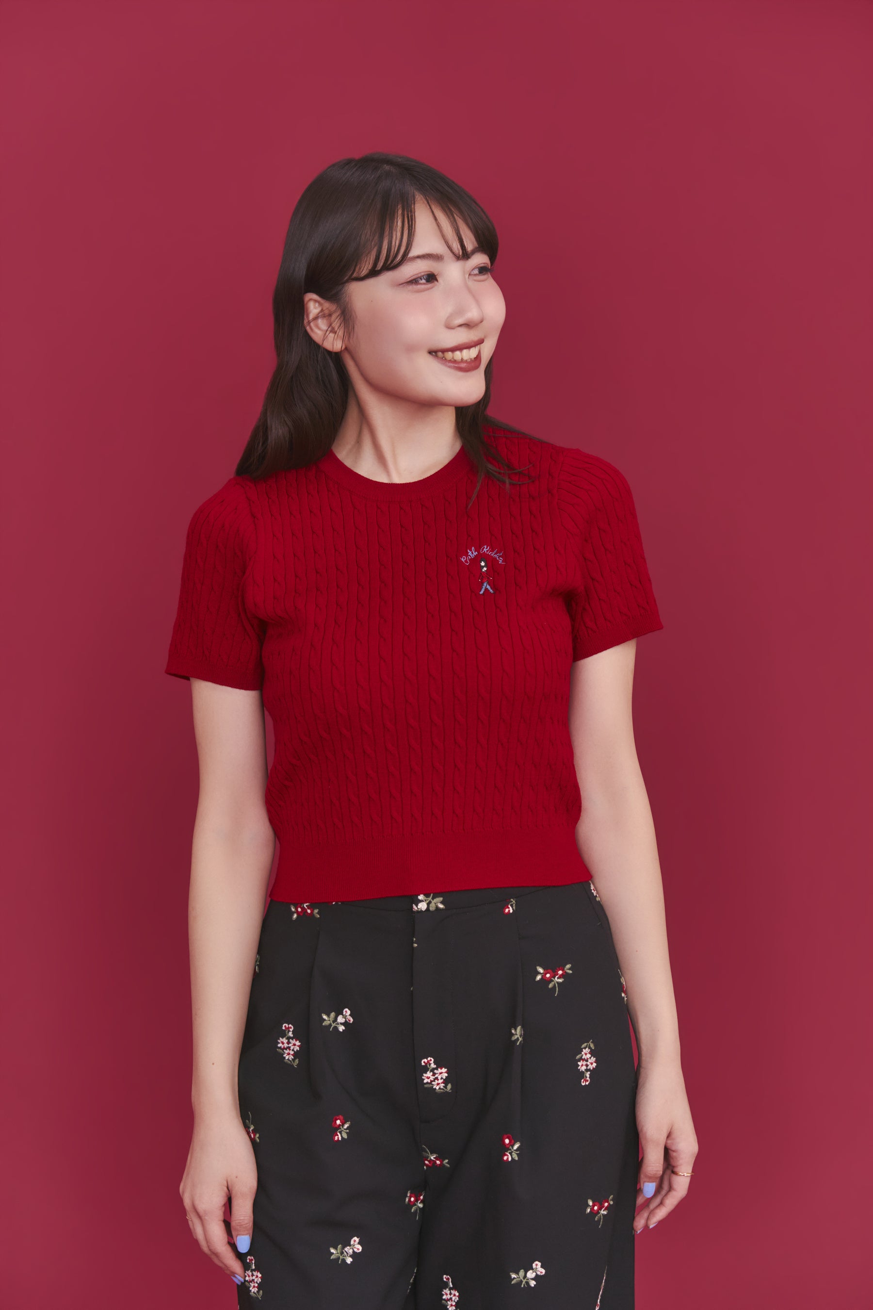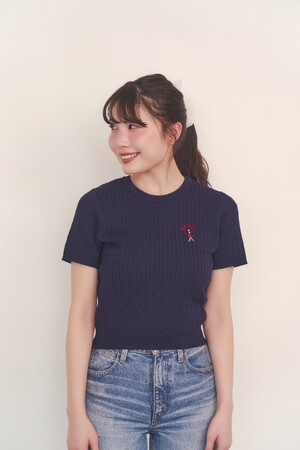 ◇ショートスリーブライトニットトップス Queenie‘s London Ivory / Navy / Red / Sax / Pink 各8,800円(税込)