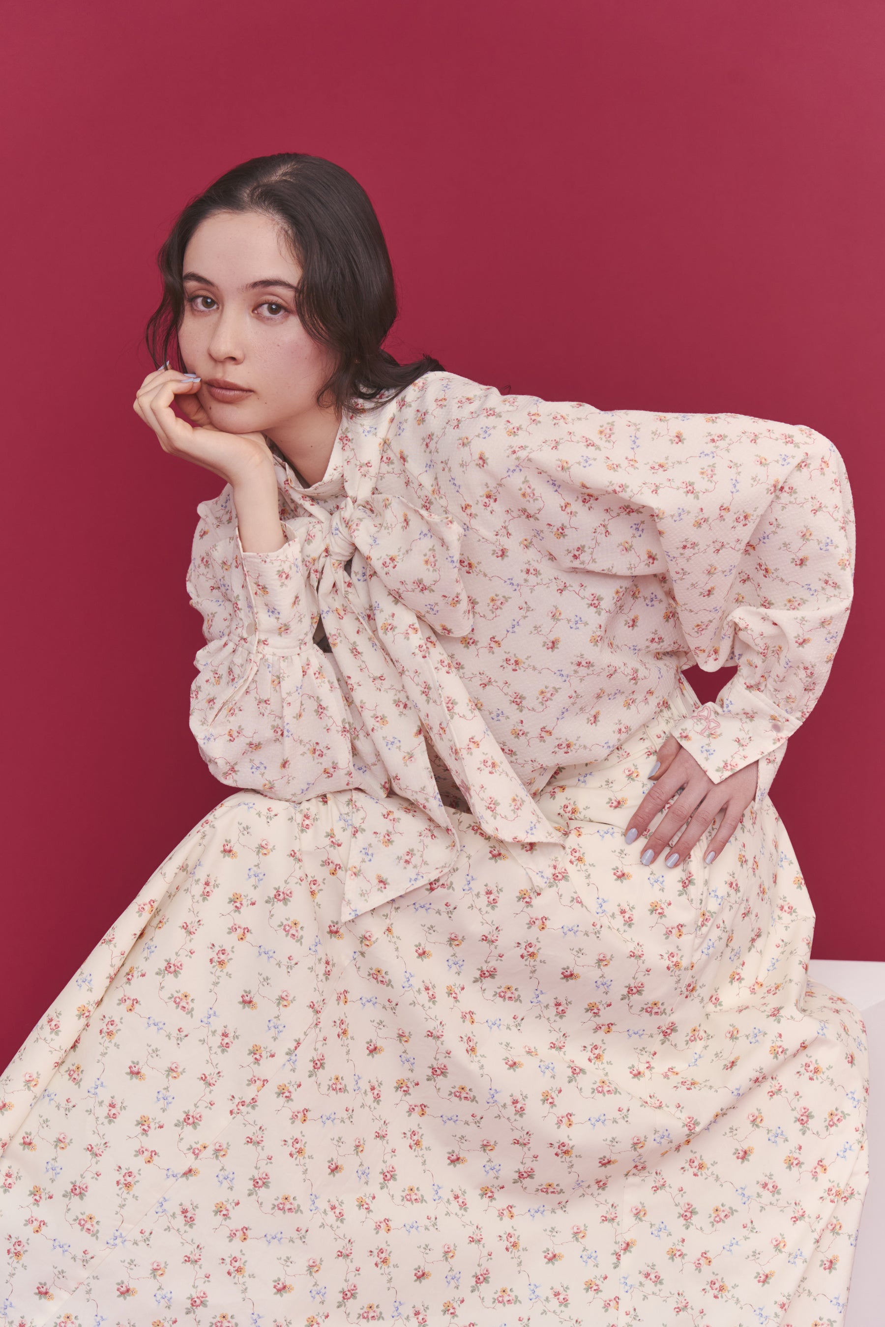 も着丈を少し短くアップデート。後ろウエストはゴムギャザー仕様なのでストレスフリーな着心地です。複数の柄を組み合わせたCath Kidstonならではの個性的なデザインもご用意しています。同柄のボウタイブラウスを合わせれば、セットアップ風の華やかな装いに。スウェットやニットなどベーシックなアイテムとも相性が良く、日常のコーディネートをクラスアップしてくれる一着で