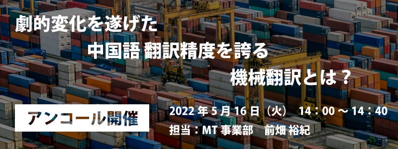 AI自動翻訳のロゼッタ ウェビナー『劇的変化を遂げた中国語翻訳精度を誇る機械翻訳とは?(アンコール開催)』5月16日(火) 開催
