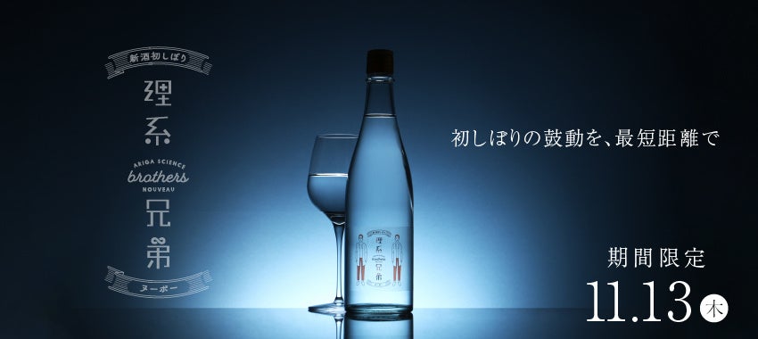 11月に話題になるワイン「ボジョレーヌーボー」は、フランスのボジョレーで収穫されたぶどう(ガメイ種)で造る赤ワインの「新酒」のことで、その年のぶどうの作柄を確かめ、また、ぶどうの収穫に対する感謝とお祝いの意味も込められています。「日本酒でもそんなヌーボーを造れないか」という思いからスタートしたのが「理系兄弟ヌーボー」プロジェクトです。今回お届けするのはクランドの日本酒の中で人気トップの座に君臨し、お客さまからも多くの高評価をいただいている「理系兄弟」です。理系兄弟のシーズンにとって初物となる「初しぼり」を搾ったばかり状態のまま、最短スケジュールでお届けします。
