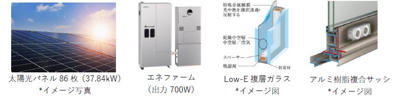 各住戸では太陽光パネル※3と高効率給湯器エネファームによる発電により、一次エネルギー消費量を63%削減し※4、年間で80,000円(月平均6,600円)※4の光熱費削減が見込まれます。