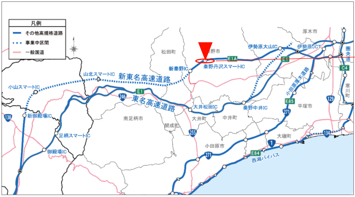 〇駐車場場所 神奈川県秦野市戸川字諏訪丸1333番5※E1A新東名上り線秦野丹沢スマートICから約400m地点