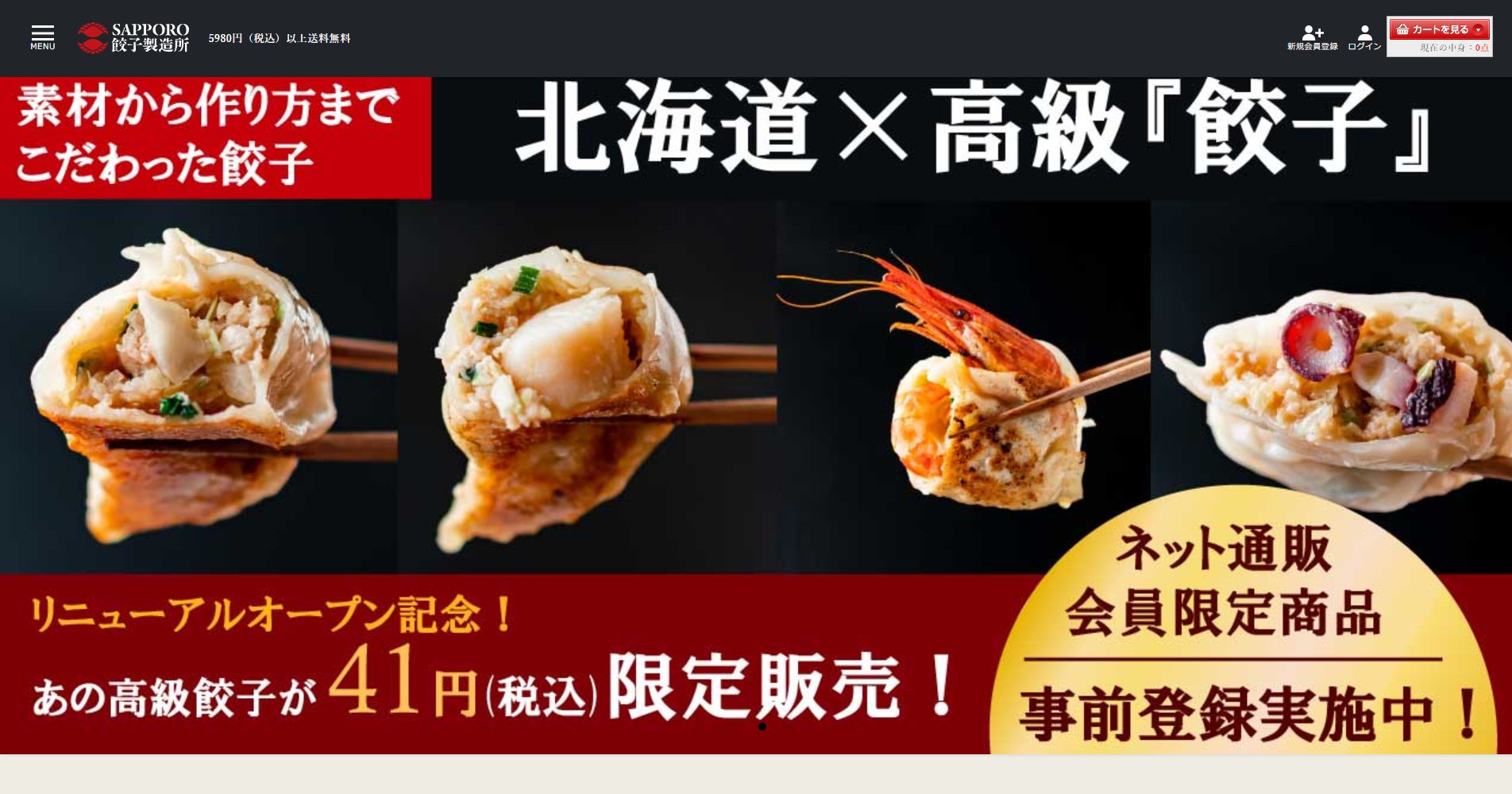 今回のオンラインショップリニューアルキャンペーンでは、「SAPPORO餃子製造所」で人気の餃子をキャンペーン価格にて数量限定でご用意いたします。キャンペーン対象商品を購入できるのは、オンラインショップの会員だけの特典。(登録無料/会員費無料) 「SAPPORO餃子製造所」が作る餃子は、グルメな人も唸る味。『贈りたい餃子ギフト』として選ばれるこの餃子を、ぜひご自宅でご堪能ください。