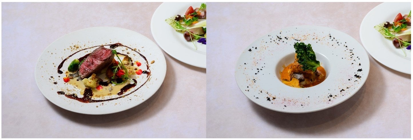 真鯛、オマール海老、鮑を贅沢に使用したお魚料理や柔らかくしっとりと焼き上げた和牛フィレ肉。また、季節の冬のお野菜をふんだんに使用した芳醇な香りを纏った寒ブリの前菜、パティシェこだわりのデザート等クリスマス限定メニューをお楽しみください。