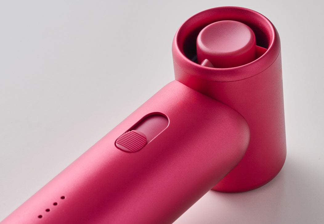 ボタンをスライドするだけのワンアクションでスイッチのON、OFF、風量の調整が可能。片手で簡単に取り出し、すぐに使用できます。